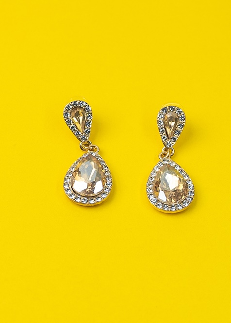 High-End Women Drop Earrings (Gold Alloy Crystal Heartshaped Hoop)