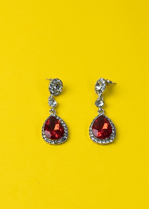 High-End Women Drop Earrings (Red Alloy Crystal Heartshaped Hoop)
